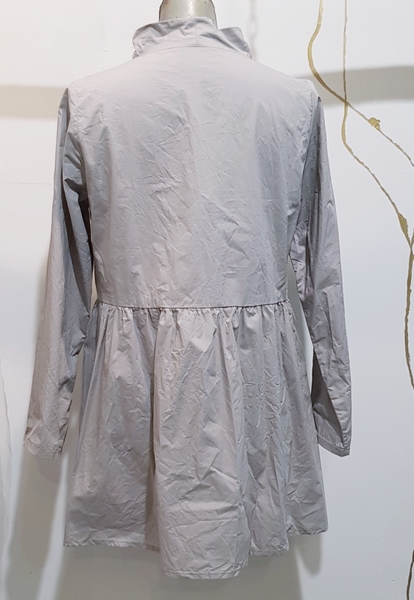 hier in zwei unterschiedlichen graufarbigen Baumwollstoffen. Der Rock wirkt durch die Stufen und Rüschen wunderschön lebendig. Für die Bequemlichkeit wurde er mit Gummibund gearbeitet.