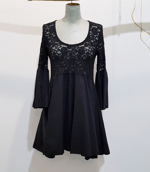 ein wundschön auffälliges langes Oberteil. Herrlich über Röcke, Hosen und Kleider zu tragen. Sehr besonders durch die Mischung unterschiedlicher Materialien wie elastischer Spitze und steifer Baumwolle....ein Träumchen