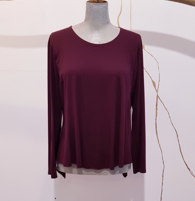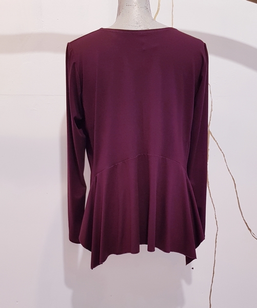 in meinem Lieblings Jersey aus Viskose. Hier in einem satten Bordeauxton...... passend zu fast allen Winterfarben. Das Shrt ist vorne schlicht gerade geschnitten und im Rückenteil verzaubert es durch eine Schößchenkonstruktion. Schlicht und verspielt zugleich