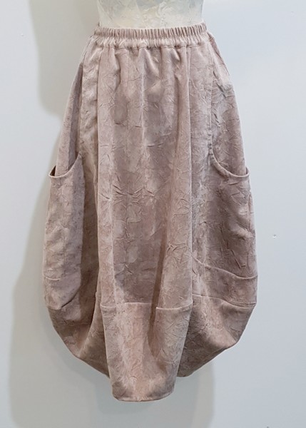 in einem sandfarbenen Crashcord....das Lieblingsmaterial für den Winter. Grose Taschen und Gummibundverarbeitung.