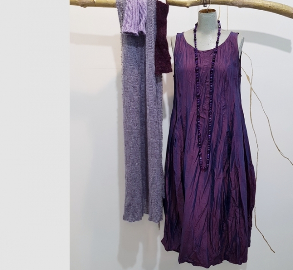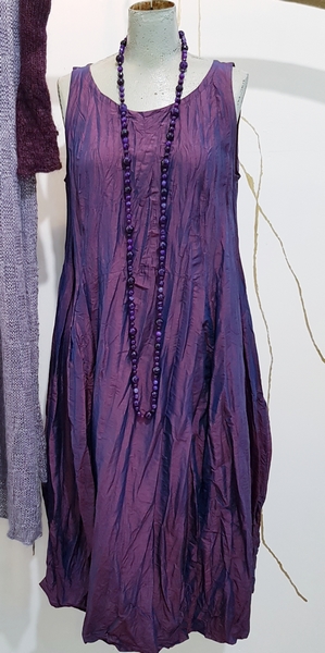 hier in lila/ burgund changierend. Ein Traumkleid, oben tailliert geschnitten und zum Saum hin eine Weite die ballonig zum Saum ausläuft. Dieses Material haben wir in sehr vielen Farben. Bitte sprechen Sie uns bei Interesse an.