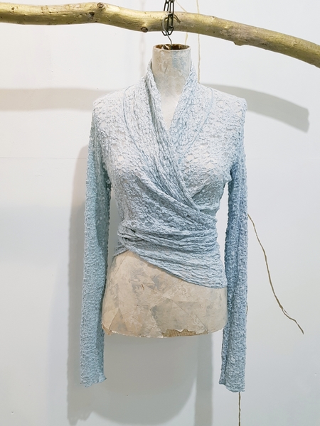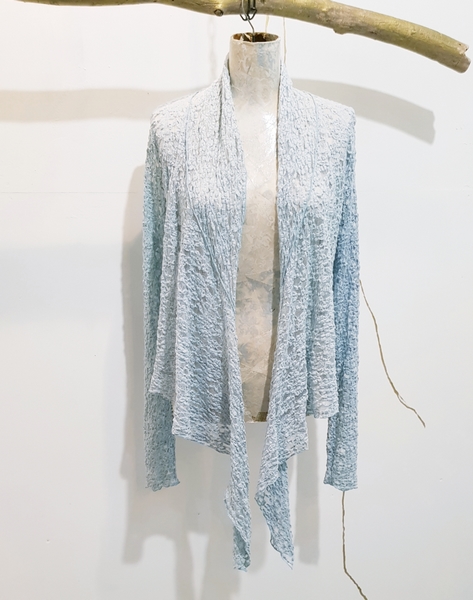 Kurzjacke mit der Möglichkeit zum Wickeln in der Farbe teal...hier mit einem zarten Kragen gearbeitet. Die Spitze ist wunderbar pflegeleicht und in vielen Farben erhältlich. Sprechen Sie uns gerne an wenn dieser Farbton der falsche ist.