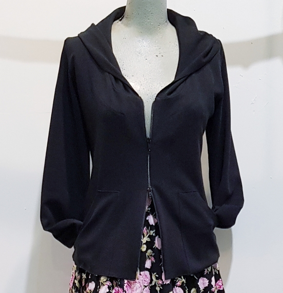 hier aus einem dicken Baumwolljersey. Geshlossen wird das Jäckchen über einen 2 Wege Reißverschluss. Hingucker sind die kleinen aufgesetzten Taschen und die Kapuze.