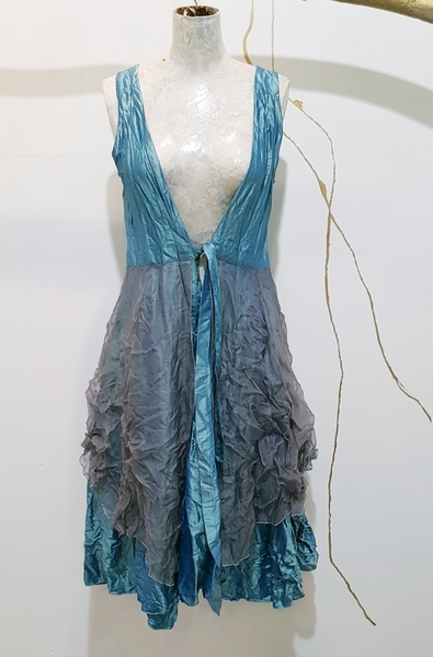 hier in einer wunderschönen türkisfarbenen Seide gepaart mit einem Seidenorganza in der Farbe rauchquarz. Ein verspielter Hingucker zu farbig passenden Kleidern oder Röcken. Die Seide haben wir in sehr vielen Farben auf Lager, sollte Ihnen diese hier nicht gefallen. Sprechen Sie uns einfach an.