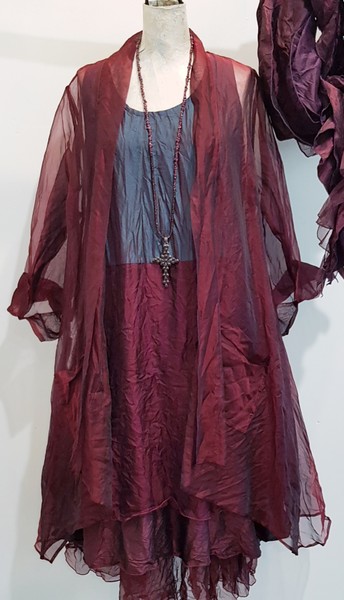 hier aus einer transparenten Organzaseide in bordeaux rot. Ein Highlight für den besonderen Auftritt......dieses schöne Teil passt allerdings auch auf Jeans. Man muss nur diesen Materialmix lieben.