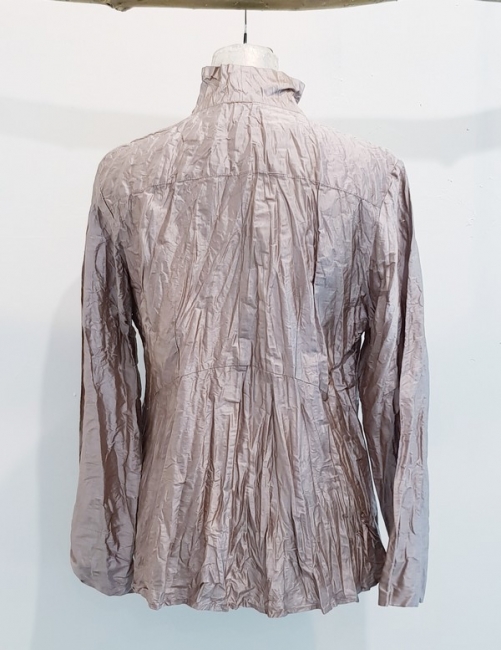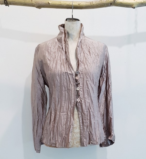 mit Schößchen +5.....hier in perlmuttfarben. Dieses Material haben wir in sehr vielen Farben. Sofern Sie interessiert sind, nehmen Sie gerne KOntakt mit uns auf. Hingucker dieser Bluse sind die Kleinen unterschiedlichen Knöpfe mit Schlaufen