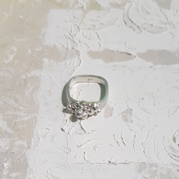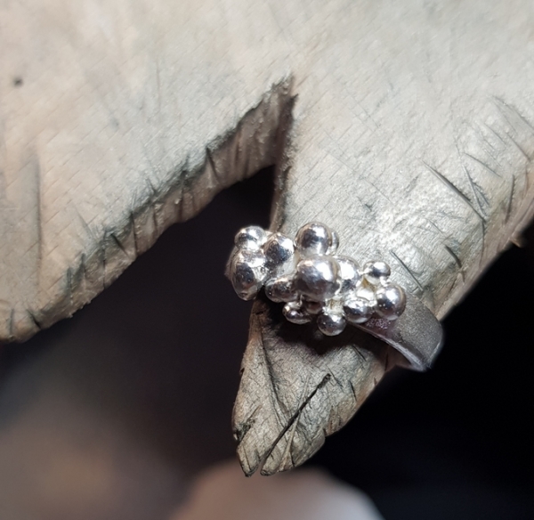 hier trifft alt auf neu...... ein kleiner eckiger Silberring mit einem Goldelement,wurde von mir mit kleinen Silberkügelchen veredelt