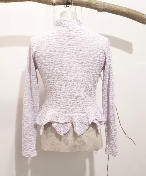 hier in einer hauchzarten Stretchbaumwolle in ganz hellem rosa, mit Cloqueoptik durch Stickerei mit einem elastischen Faden gepaart . Als Verschluss dienen unterschiedliche KnöpfchenHIngucker ist die Verarbeitung mit farbigem Garn in der Farbe dunkelrosa