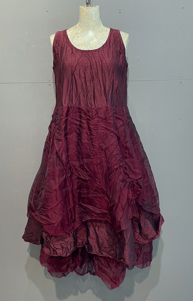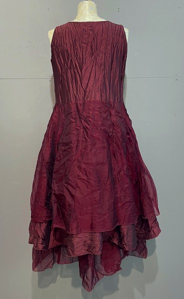 hier in einem wunderschönen dunklem Rot. Das Kleid ist ein absoluter Hingucker. Edel und besonders. Seide und Organze am Wechsel. Das Kleid ist o. Arm geschnitten. ( die Möglichkeit bei bestellung mit Ärmel ist möglich )