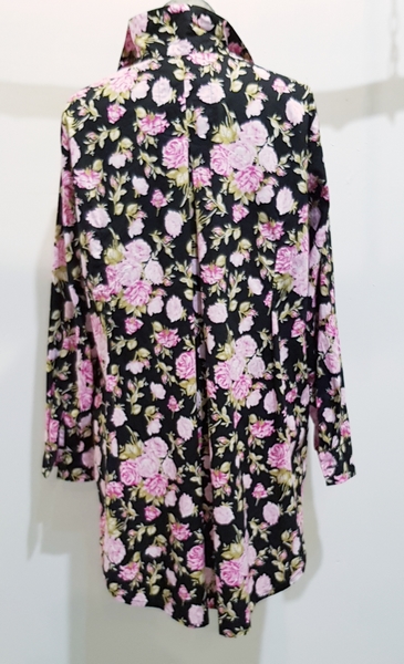 hier in einer pinkfarbenen Rose auf schwarzem Grund....ein Modell das wunderbar zu Hosen und Röcken passt.