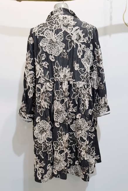 hier in einem anthrazithfarbenen Jeansgewebe gepaart mit einer herrlichen Stickerei aus Baumwolle..... Der Mantel ist ungefüttert !