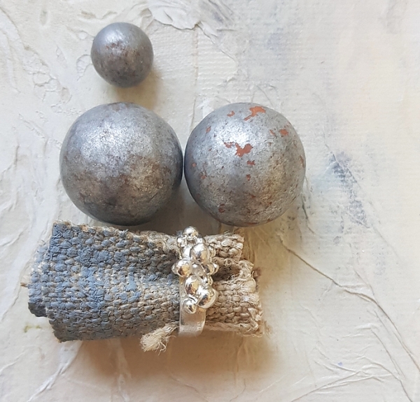 hier trifft alt auf neu...... ein kleiner eckiger Silberring mit einem Goldelement,wurde von mir mit kleinen Silberkügelchen veredelt