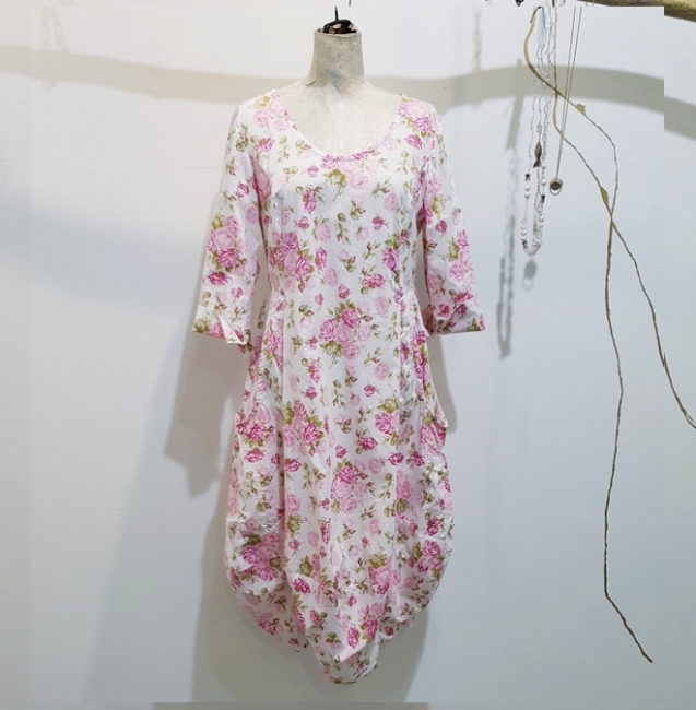 hier in wunderschönen zart rosa farbenen Blumen. Ein Traum von Sommerkleid aus Baumwolle. Hier mit einem 3/4 Ärmel gefertigt.