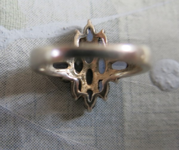 diese alte, kleine Schönheit ist mit 11 kleinen, zart fliedergrauen Steinen besetzt....ein herrliches Kleinod.