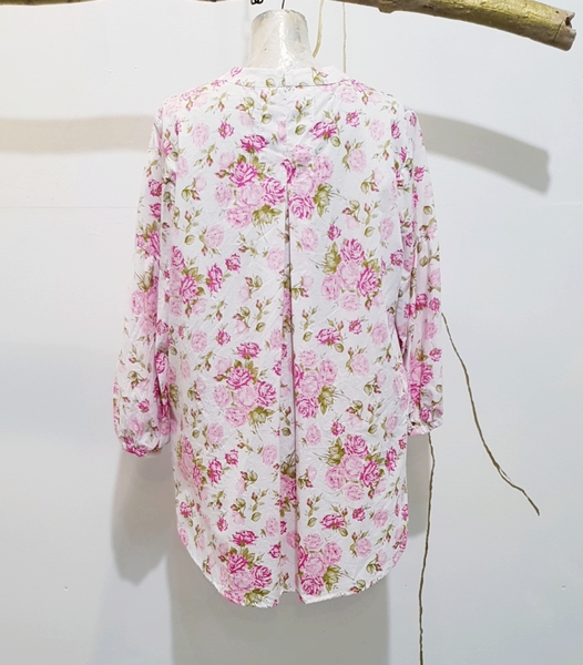 ein herrlicher Hingucker für Jeans oder weiße Hosen...diese Bluse aus einem zarten Rosenstoff in leichtem pinki...... Ich habe die linke Seite des Materials verarbeitet, da ich genau diesen Look erzielen wollte.