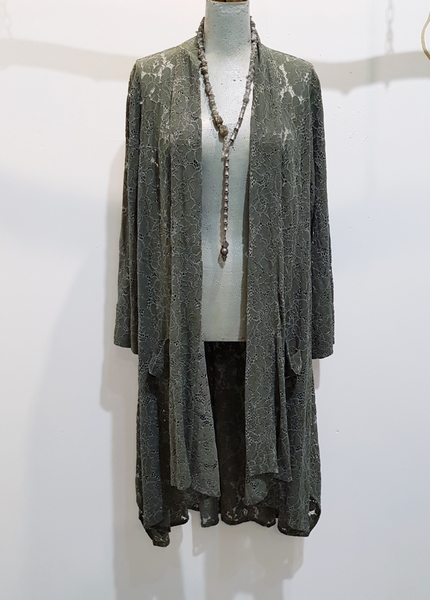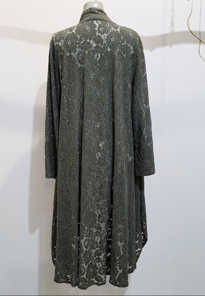hier mit einer asiatisch inspierierten Blüte...... in einem leicht blaustichigem Grünton mit einem 3/4 Arm aus reiner Baumwolle. Ein wunderhübscher Wegbegleiter in der Zeit von herbst bis zum Frühling. Pur getragen, mit Peddicoat, 2. Rock oder Leggins...Immer ein HinguckerArtikel Nr. 1172