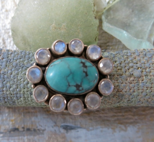 hier mit einem großen Türkis und 11 kleinen Mondsteinen