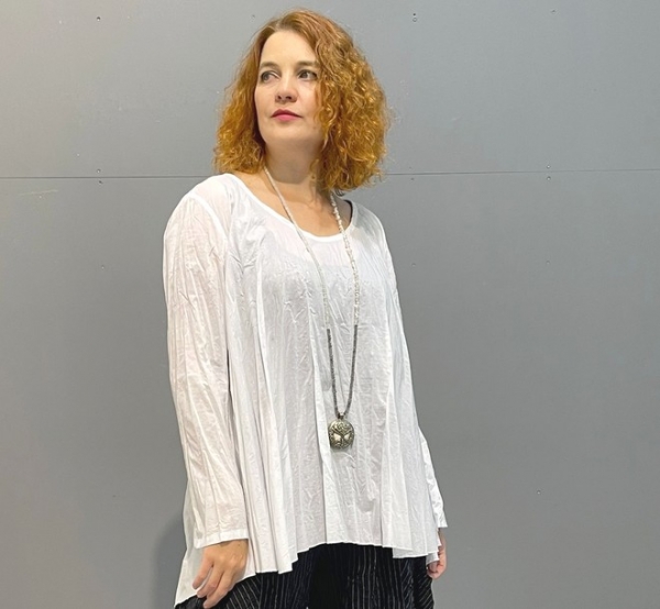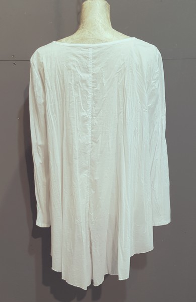 Es ist eine Bluse in A Form ...rundgeschnitten. Schlicht aber wirkungsvoll