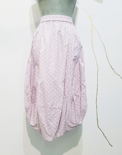 mit Gummibund verarbeitet, für die Bequemlichkeit. Hier in zartem Rose. Das Material haben wir in vielen Farben. Bitte sprechen Sie uns darauf an. Der Rock hat 2 große Taschen an den Seiten und ist bauchig geschnitten