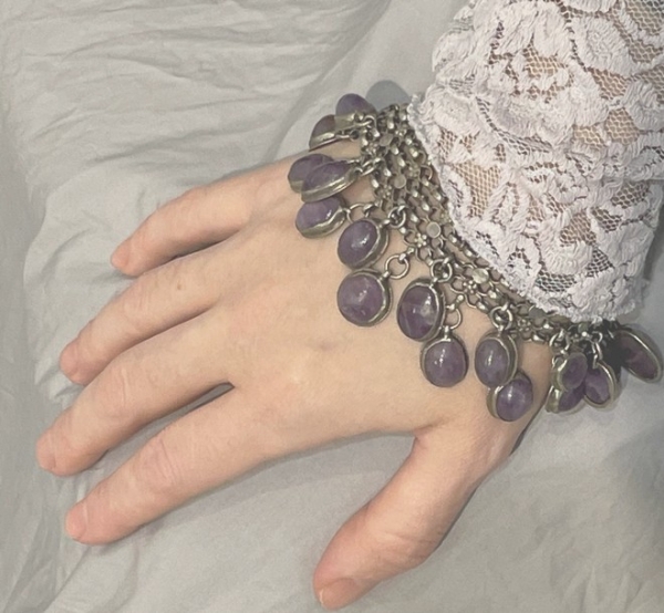 25 rauchige Amethysten( unterschiedlich ) in Silber gefaßt.