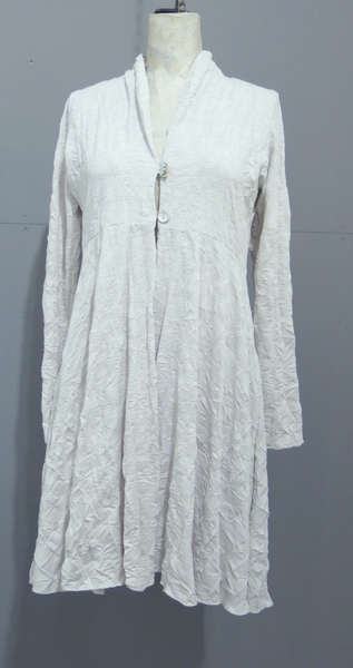 Gearbeitet im Empirestil mit kleinem Schalkragen. Als Verschluß dienen 2 Knöpfe