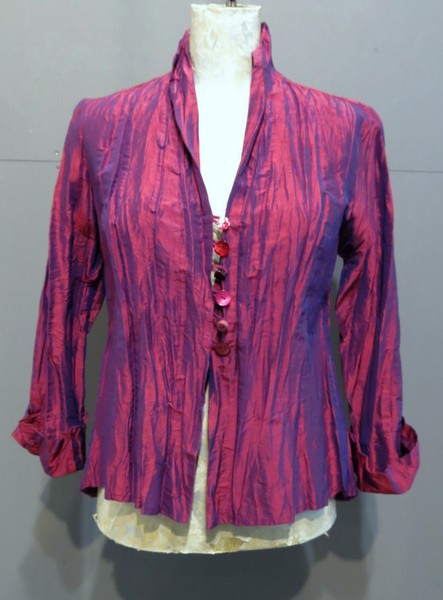 hier in einem pink/ beere Ton changierend. Das Material ist aus 100 % Seide und wird von uns gecrashed.( 368 )