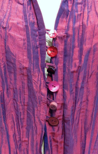Das Teil kann man als Jäckchen oder Bluse tragen. Verschlossen wird es mit unterschiedlichen Knöpfchen. Sie varieren immer !