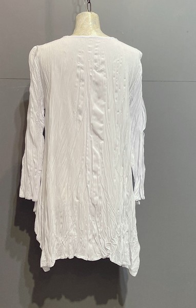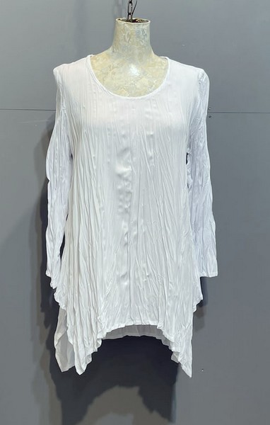 Das Material ist eine wunderbar, zartfliessende Viskose. Der Schnitt ist in A Form, leicht zipfelig. Ein Teil das man wunderbar auf Röcke und Hosen tragen kann. Es ist in vielen Farben erhältlich und wunderbar pflegeleicht.