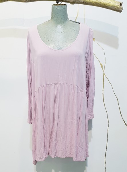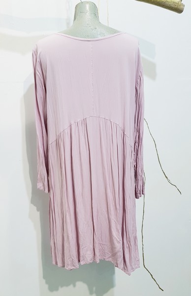 hier in einem rose Ton gezaubert. Der Hingucker ist die Naht unterhalb der Brust. Sie erinnert an den Empirestil. Die Viskose ist leichtfliessend und super bequem und lässig. Ein Werkstoff für jeden tag.