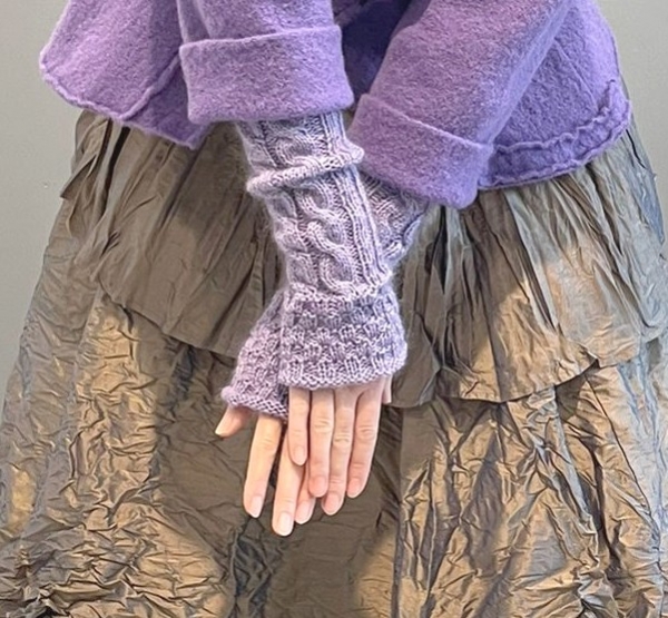 in einer Merinowolle, mit Kidmohair und Seide. Kleine Handschmeichler die ich, passend zu unserer Kollektion von Hand gestrickt habe. Es sind immer Einzelstücke die da entstehen....