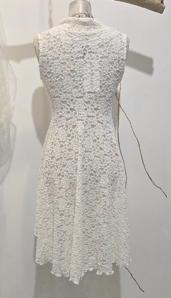 hier in unserer zauberhaften Spitze in ecru. Das Material ist super angenehm auf der Haut und sehr pflegeleicht. Die Weste ist im Stil der Jahrhundertwende gezaubert. Versehn mit kleinen Knöpfen, die die Figur betonen.