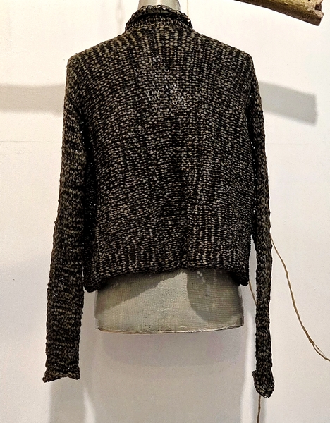 hier aus einem Bändchengarn aus einem Baumwollgemisch handgestrickt. Ich liebe diese Art von Pullis. Nicht zu lang und universell tragbar.