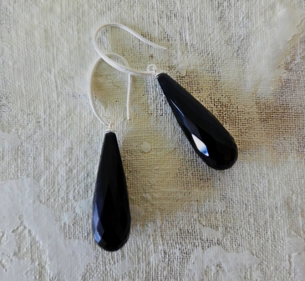 hier eine Ohrschleide in gebürstetem Silber mit einem langen faccetiertem Onyx in Kegelform. Onyx entsteht in Hohlräumen von Vulkanen und steht für innere Ballence, Stärke und Schutz. Ein Traumteil an Ohrgeschmeide